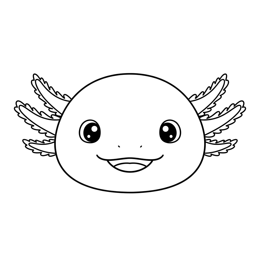 En charmerende og enkel omrids af et smilende axolotl-ansigt, der viser dets karakteristiske fjerlignende gæller. Denne yndige vandlevende padde er perfekt til en sjov og nem maleaktivitet.
