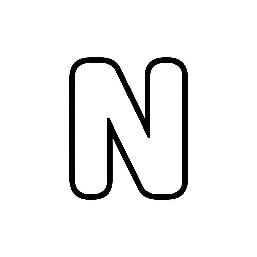 Dette billede viser et fedt, afrundet stort bogstav N, præsenteret i en ren, tyk sort linjestil, perfekt til unge elever eller enhver, der nyder alfabet-relaterede aktiviteter.