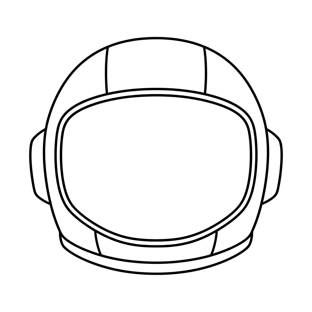 En ren og klassisk stregtegning af en astronauthjelm med et fremtrædende visir, perfekt for aspirerende rumforskere at farvelægge.