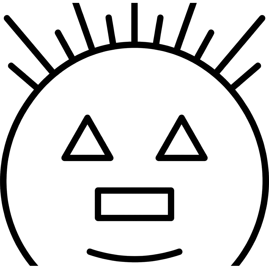 Et venligt, abstrakt ansigt med trekantede øjne, en rektangulær næse og et bredt smil, toppet med pigget hår eller strålende solstråler. Dets enkle design gør det perfekt til en sjov og nem aktivitet.