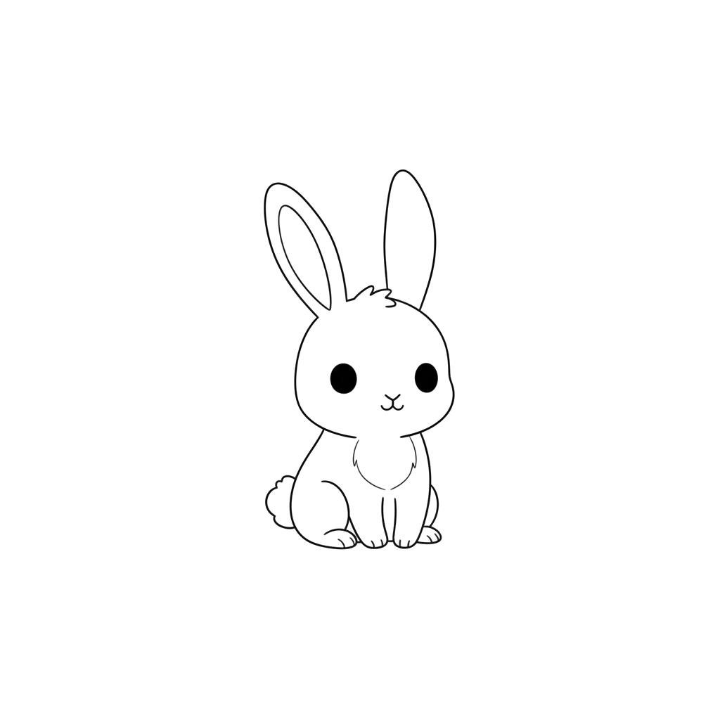 En charmerende, enkel tegning af en yndig babykanin, der sidder oprejst. Denne søde kanin har store, fængslende øjne, perfekt til en fredfyldt farvelægningsaktivitet.