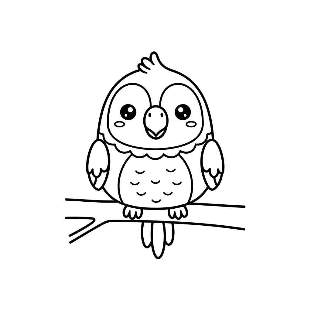 En meget sød og venlig ugle med store øjne sidder glad på en trægren, klar til et stænk farve.