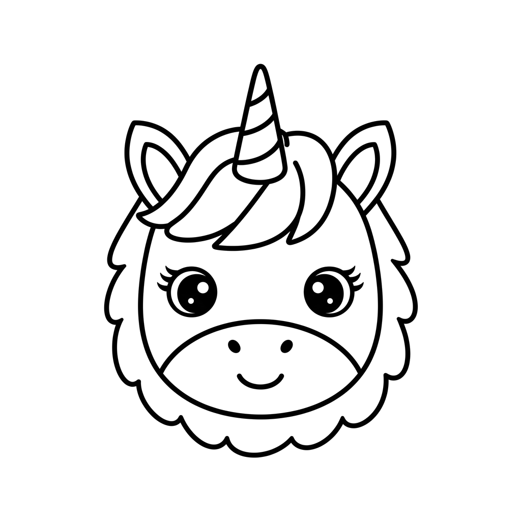 Et charmerende enhjørningehoved med store, funklende øjne, et lille smil og et snoet horn, perfekt til at give livlige farver. Dette nuttede fantasivæsen inviterer til fantasifuld leg.
