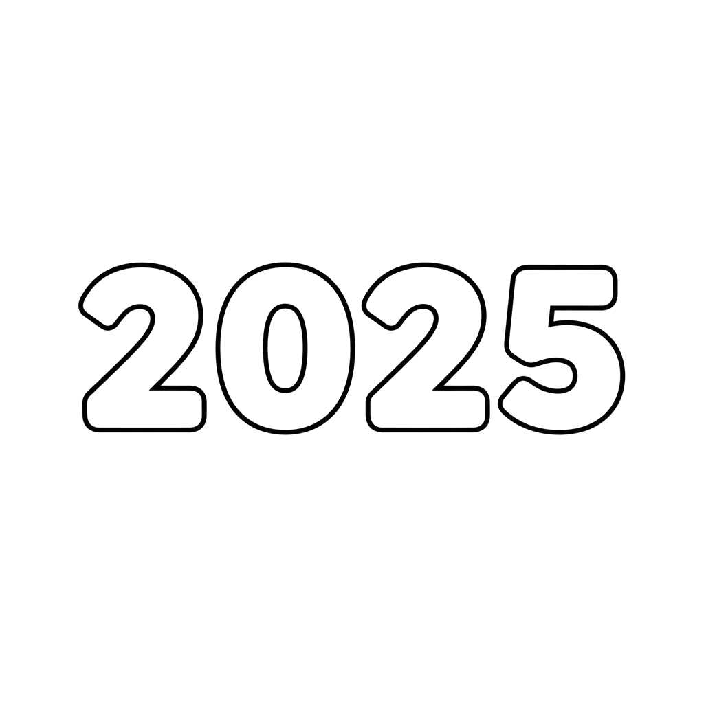 Eine klare, kräftige Darstellung der Jahreszahl "2025" mit dicken, abgerundeten Ziffern, perfekt zur Begrüßung des neuen Jahres oder eines zukünftigen Ereignisses.