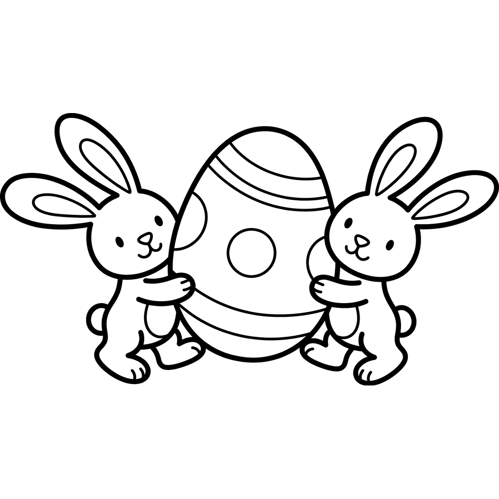 Two adorable bunnies embrace a large, decorated Easter egg, ready to be brought to life with vibrant colors. This charming scene captures the joy of spring and the Easter holiday.