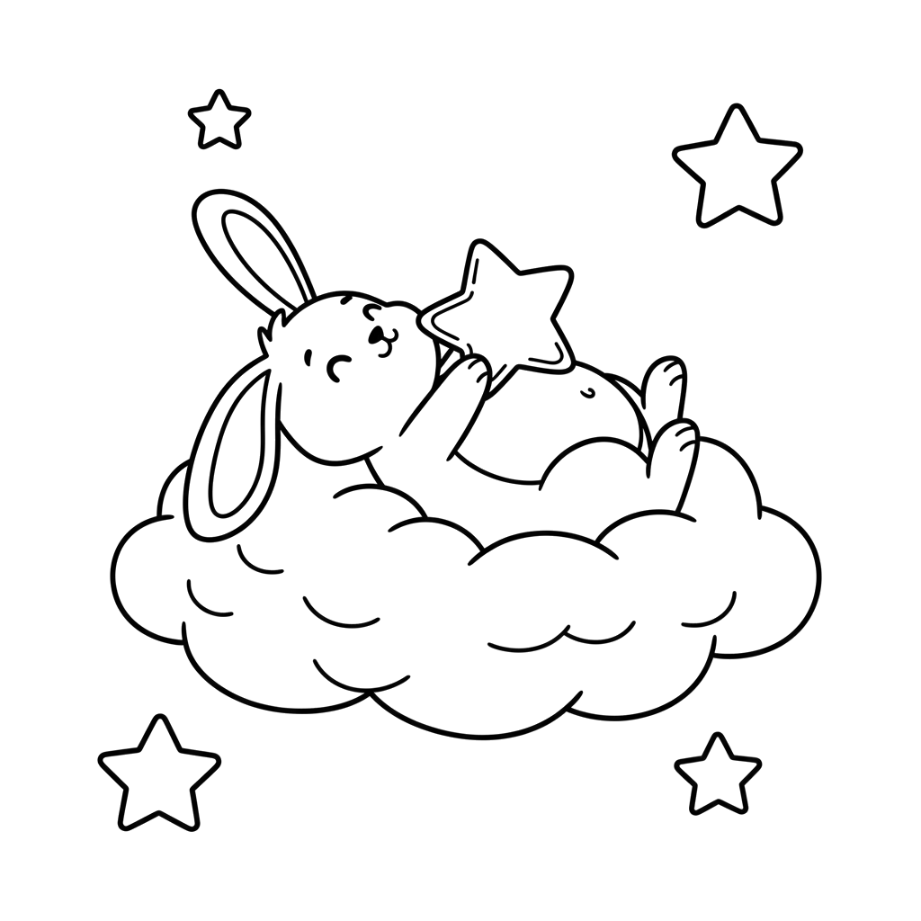 Conejito Durmiendo en una Nube con Estrellas