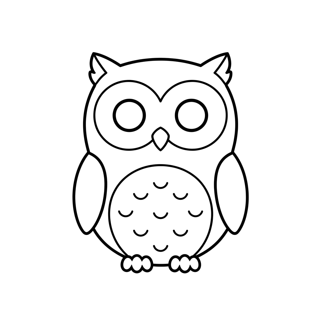 Un búho tierno y sencillo espera un toque de color, con grandes ojos redondos y detalles de plumas. Este adorable personaje de ave es perfecto para pequeños artistas.