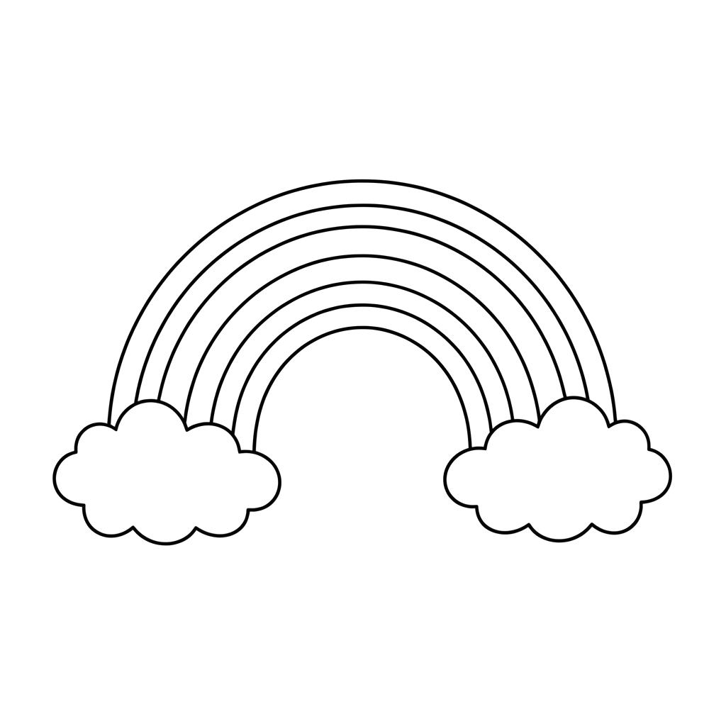 Una imagen alegre muestra un arcoíris de múltiples bandas arqueándose sobre dos suaves nubes, perfecto para añadir tus propios colores vibrantes. Este diseño brillante aporta un toque de alegría y belleza natural.