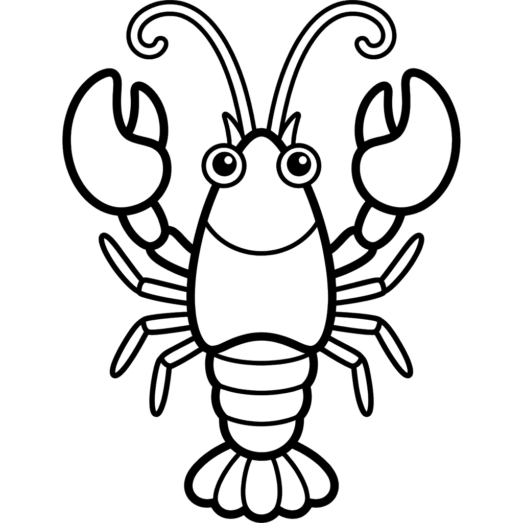 Una amigable langosta de dibujos animados lista para ser coloreada, con grandes pinzas, antenas y una cola segmentada. Esta adorable criatura marina tiene ojos grandes y una sonrisa acogedora.