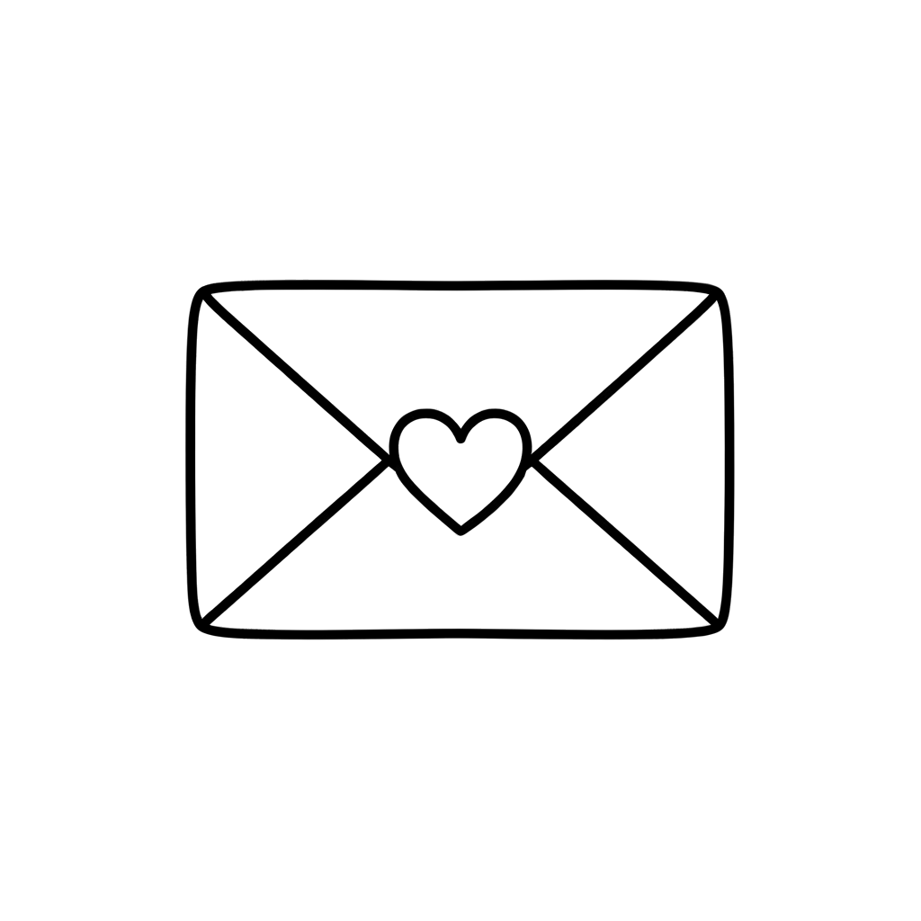 Une charmante enveloppe de style "doodle" scellée d'un cœur proéminent, suggérant un message spécial ou une lettre d'amour. Cette image simple est parfaite pour y ajouter vos couleurs préférées.