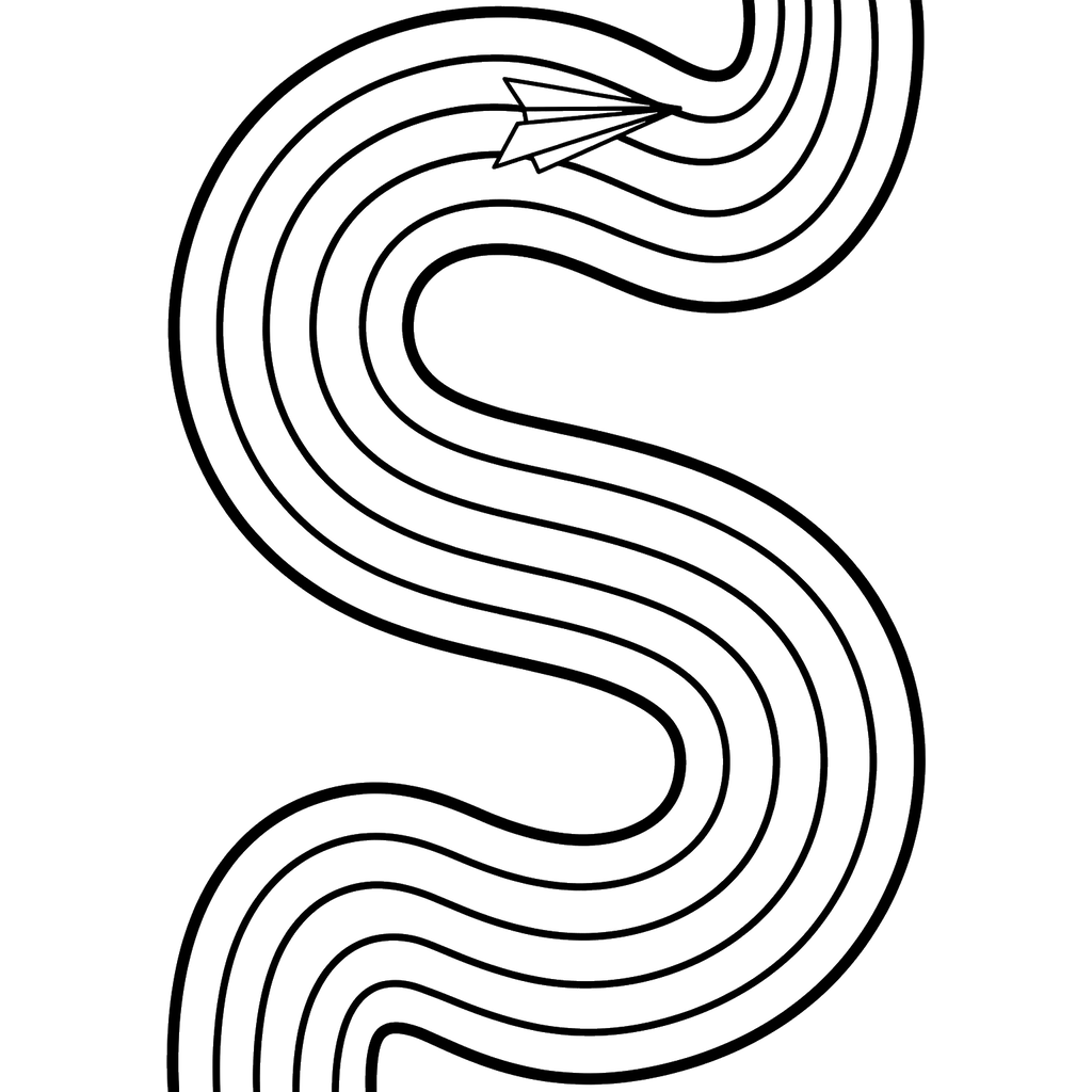 Un semplice aeroplano di carta si libra lungo un percorso curvo e a più corsie, invitando a un viaggio di colore. Questo design giocoso suggerisce movimento e creatività, perfetto per una colorazione immaginativa.