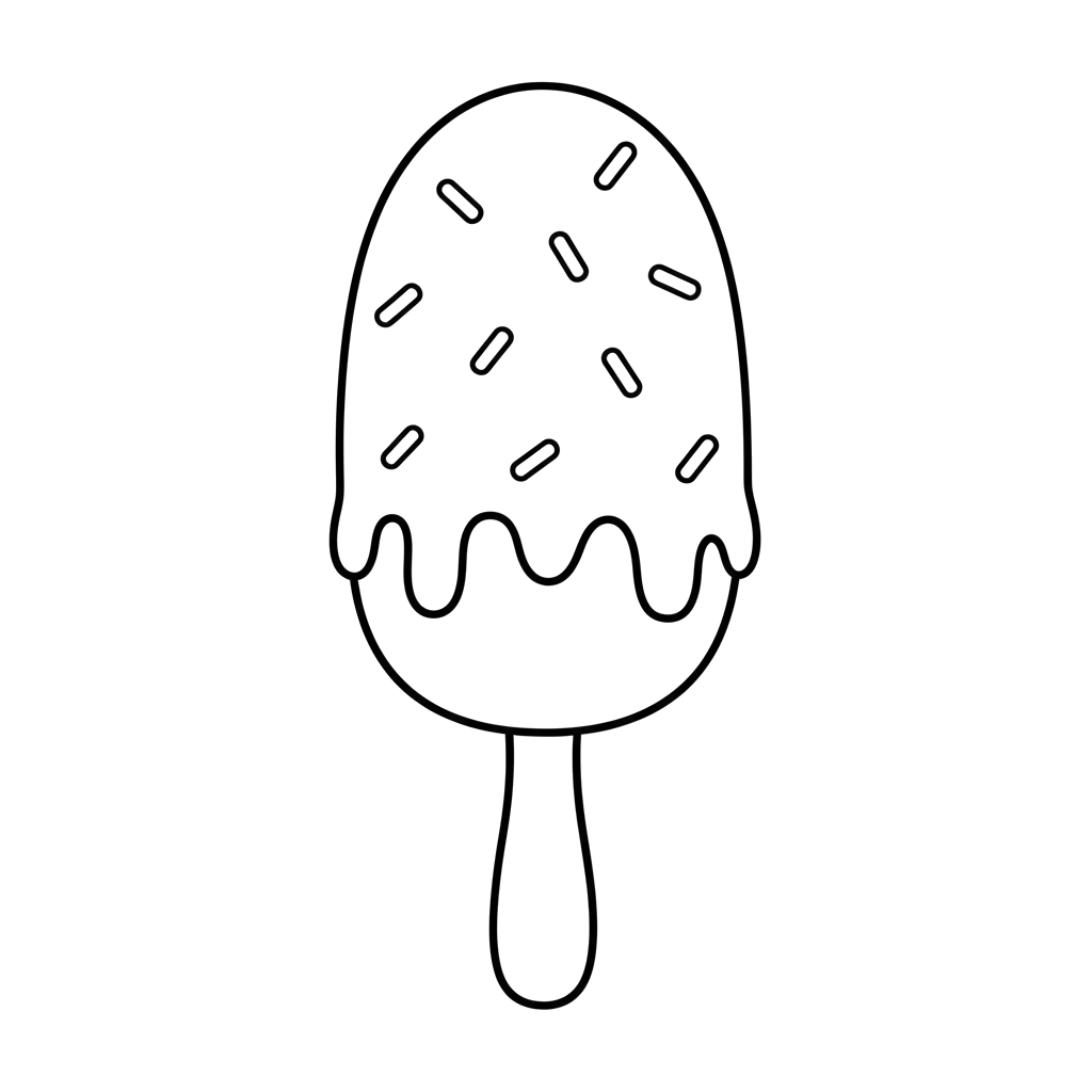 Questa immagine presenta un delizioso gelato su stecco, completo di una glassa che cola e codette sparse, pronto per essere portato in vita con colori vivaci. È un dolcetto perfetto per un'attività di colorazione divertente.