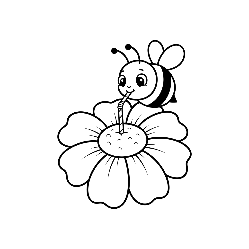 En sjarmerende liten bie nipper lykkelig nektar fra midten av en vakker blomst ved hjelp av et sugerør. Denne herlige scenen fanger et øyeblikk av naturens sødme.