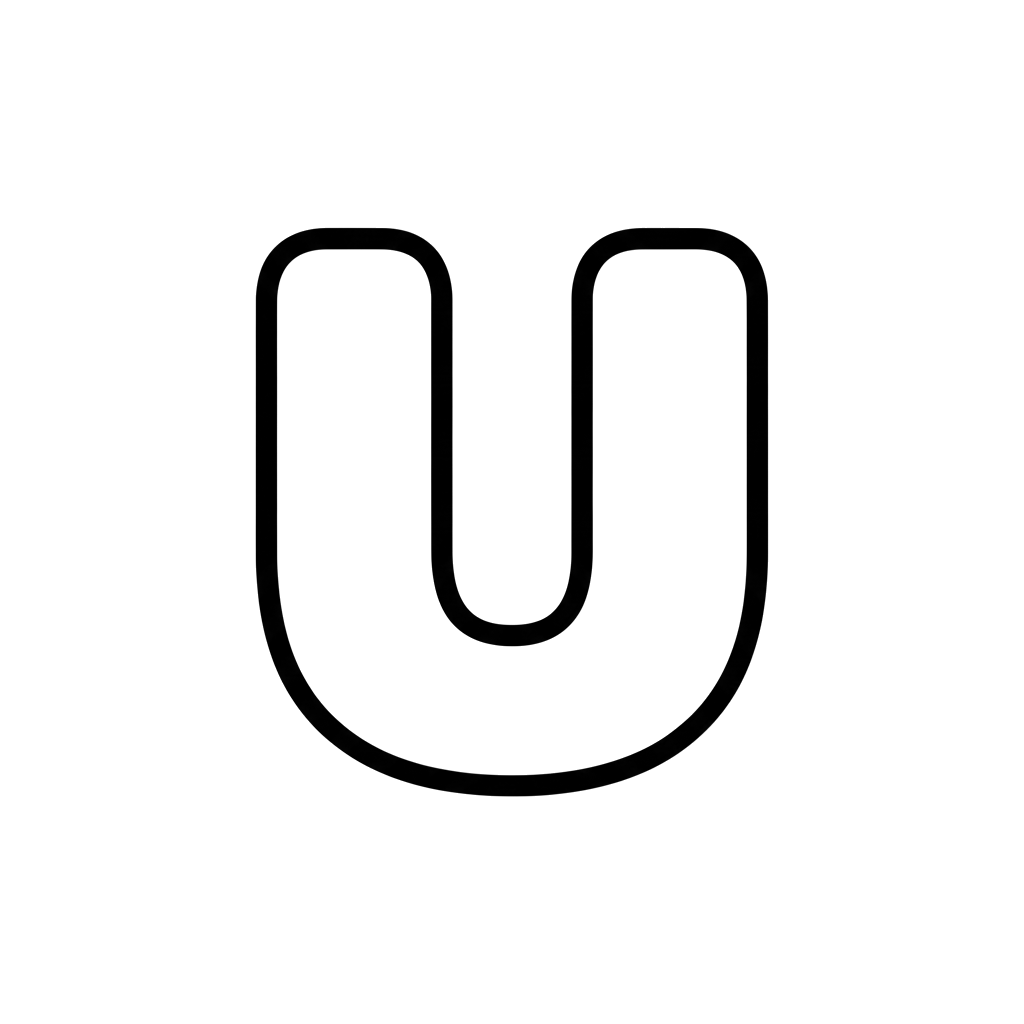 Dette bildet viser en fet, boblestil stor bokstav U, som tilbyr en morsom og enkel form for kreativ fargelegging. Det er en utmerket ressurs for å lære barn om alfabetet.