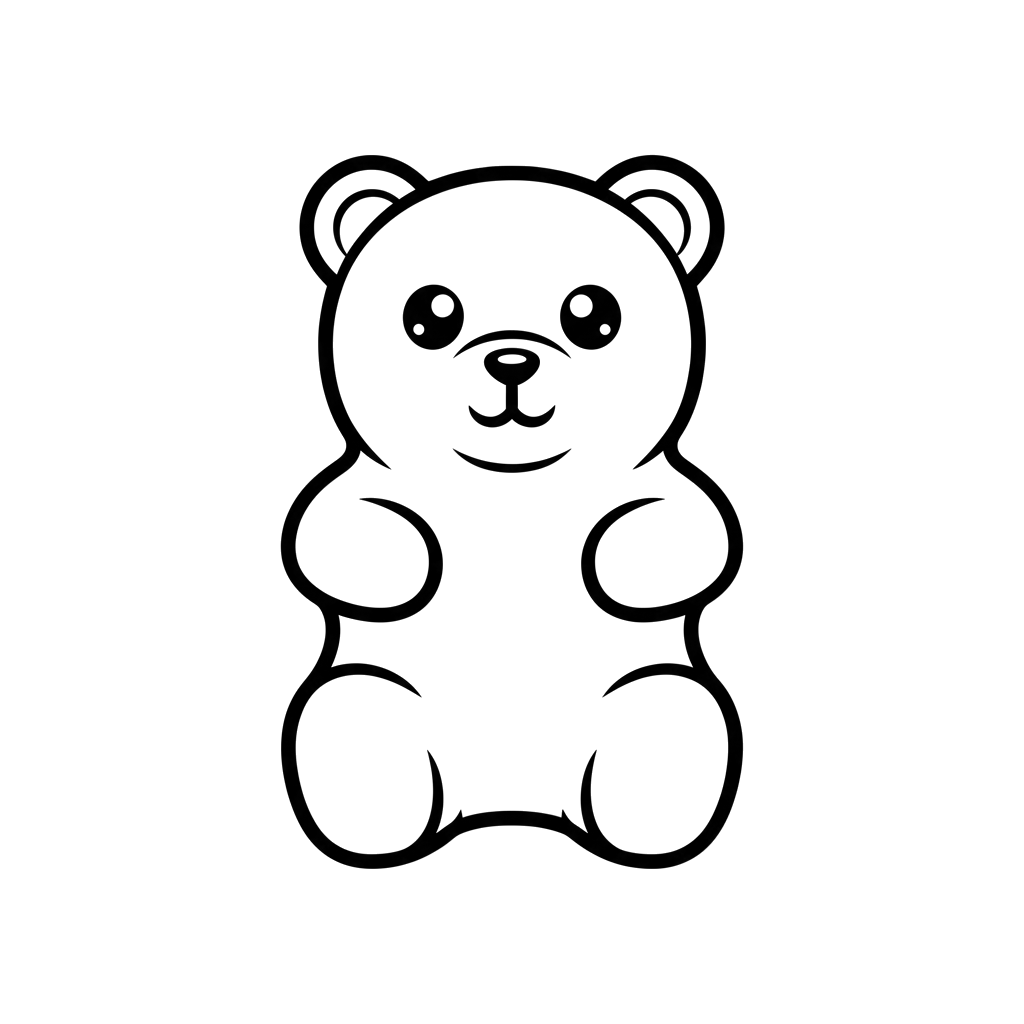 Deze lieve en eenvoudige afbeelding toont een schattige gummibeer met grote, vriendelijke ogen, klaar voor een vleugje kleur. Het is een charmante omtrek van een klassieke gummibeer, perfect voor kinderen om te personaliseren.