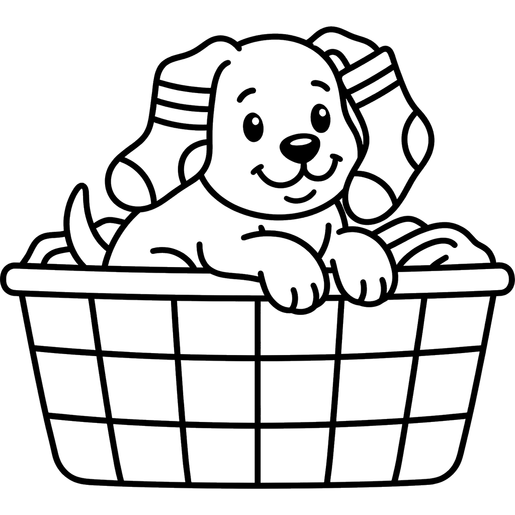 Blije Puppy in een Wasmand
