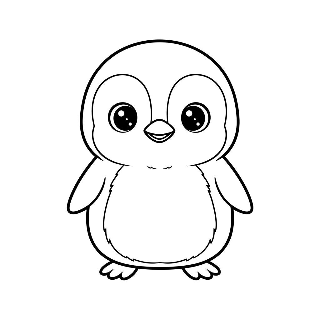 Ten obraz przedstawia uroczego małego pingwina z dużymi, wyrazistymi oczami, gotowego, by ożyć dzięki żywym kolorom.
