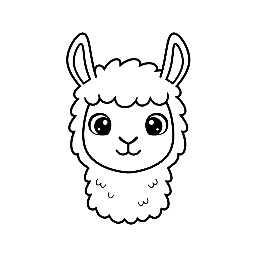 Uma lhama amigável e fofa com olhos grandes e sorridentes é perfeita para uma adorável atividade de colorir. Esta doce cabeça de animal bebê está pronta para cores vibrantes.