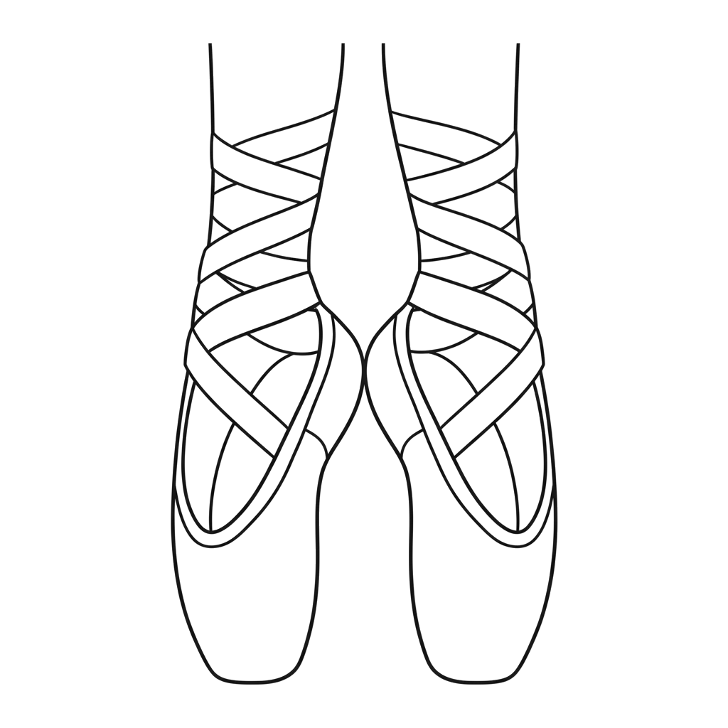Um lindo par de sapatilhas de ponta de balé é exibido, artisticamente amarrado com fitas entrelaçadas ao redor dos tornozelos, prontas para a expressão artística.