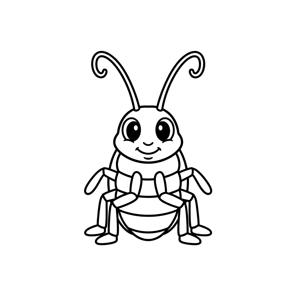 Um pequeno inseto alegre com olhos grandes e um sorriso amigável está pronto para ser colorido. Este adorável inseto possui antenas encaracoladas e seis pernas, perfeito para jovens artistas.