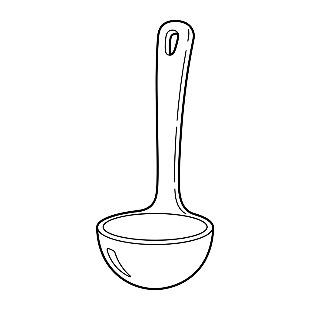 Această imagine prezintă un polonic simplu de bucătărie, ideal pentru servirea supelor sau sosurilor. Designul său clar îl face perfect pentru colorat creativ.