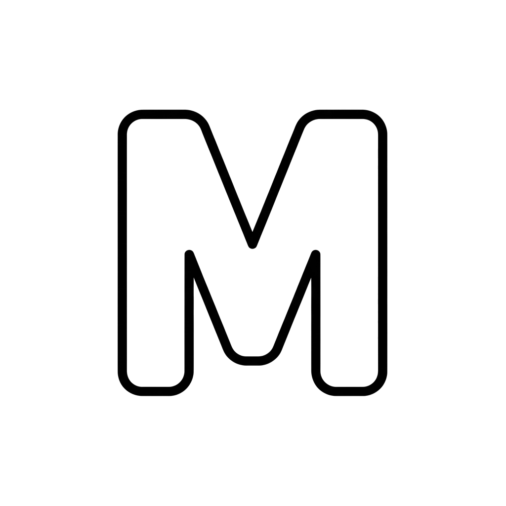 O reprezentare simplă, dar îndrăzneață a literei majuscule M, perfectă pentru ca tinerii învățăcei să o coloreze și să o recunoască. Liniile sale groase și rotunjite fac ușor pentru copii să rămână în interiorul contururilor.