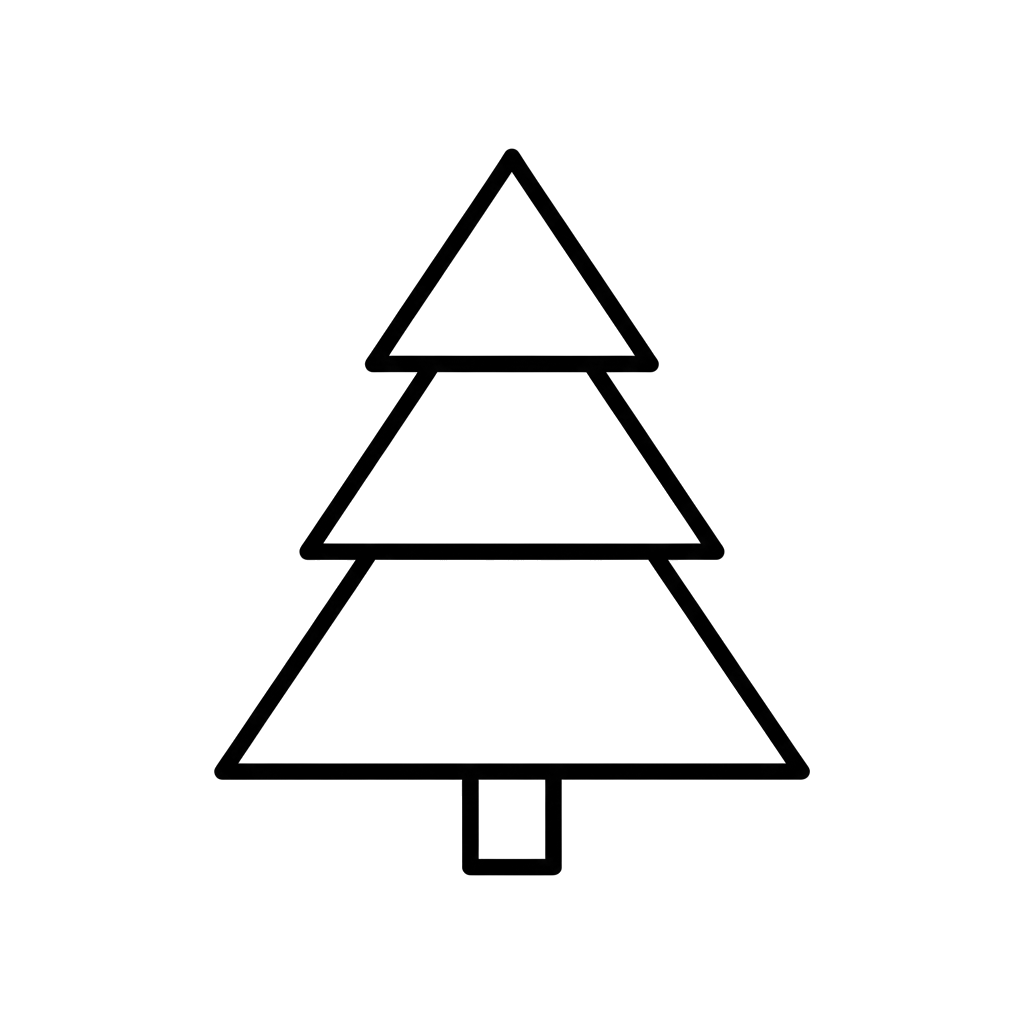 En enkel bild av ett barrträd, konstruerat av tre enkla trianglar staplade på en liten rektangulär stam. Denna rena design erbjuder ett klassiskt jul- eller naturmotiv redo för kreativa inslag.