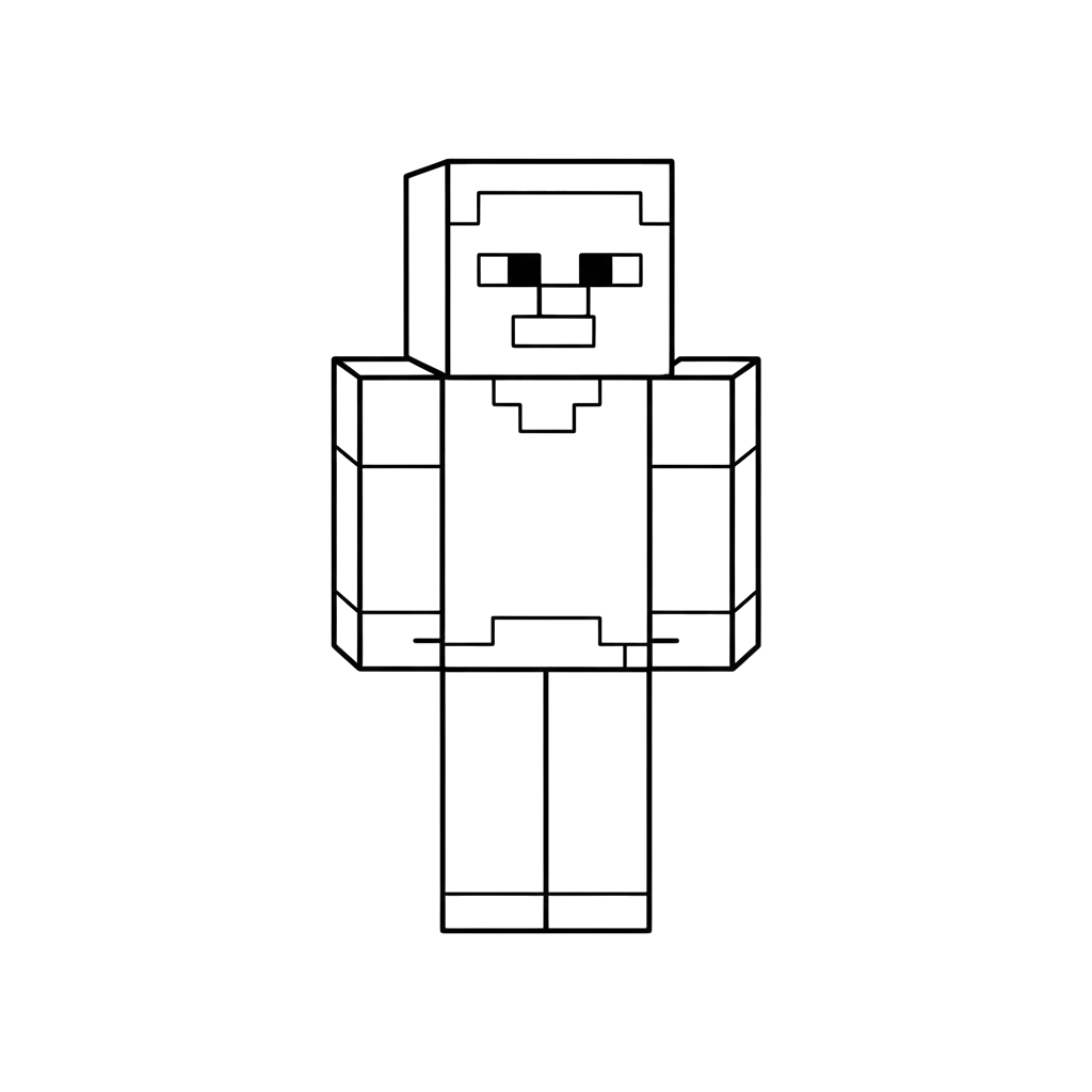 En kantig karaktär inspirerad av ett populärt tv-spel presenteras för kreativ färgläggning. Barn kan roa sig med att anpassa denna välbekanta spelhjälte med sina egna färger och designer.