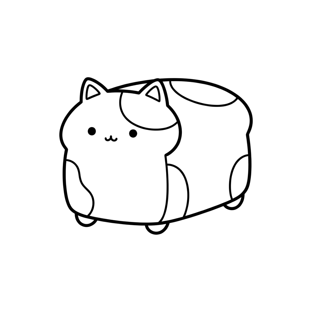 En charmig bild visar en bedårande, blockig katt i en limpa-liknande form, komplett med söta fläckar och ett ljuvligt uttryck. Denna enkla design är perfekt för dem som älskar söta djur.